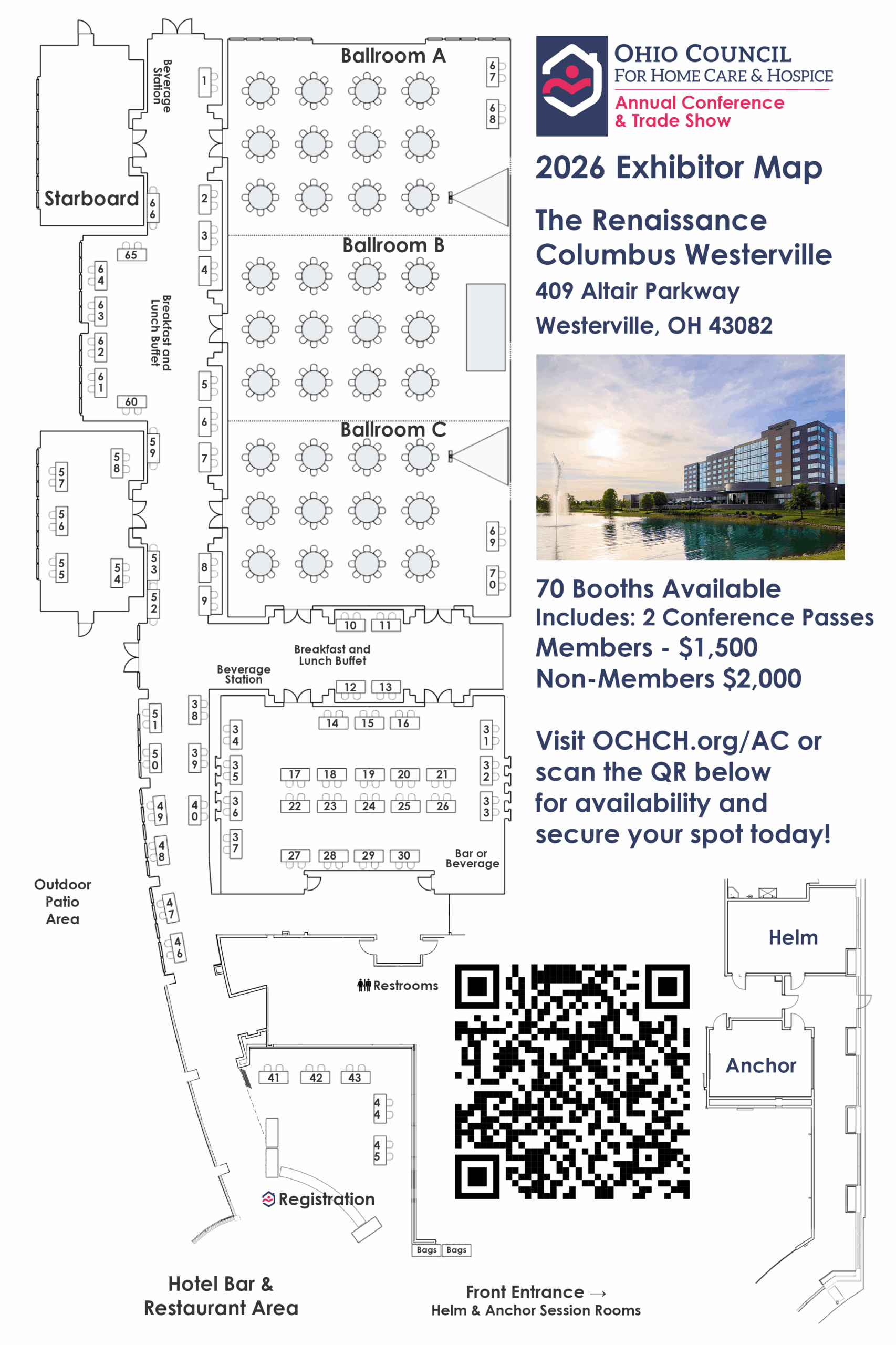 Exhibitors can provide items at your tables to promote your business, but the venue requests that they be packaged and non-perishable. If you would like to order from the hotel’s catering, you will need your own contract. If you decide to go this route, OCHCH will make the connection to the catering department.